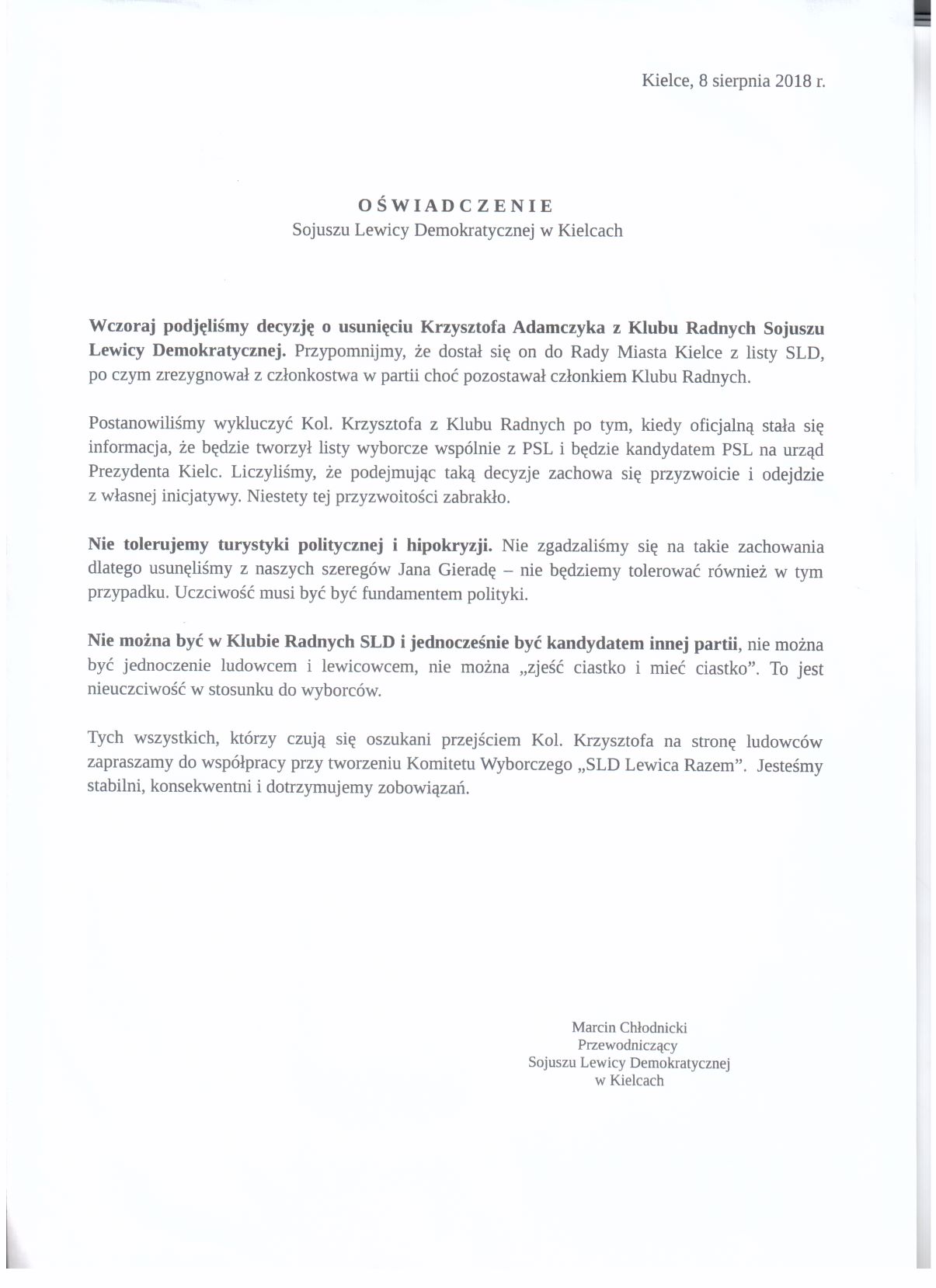 W związku z artykułem umieszczonym na stronie internetowej kielce.wyborcza.pl pt. “Wybory 2018. SLD marzy o rządzeniu i nie ...
